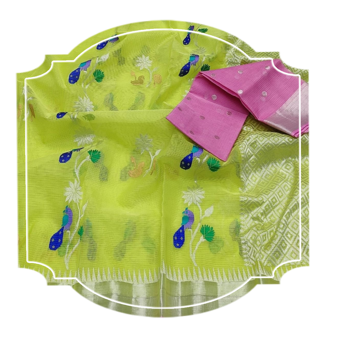 At Druthi Sarees, each piece is more than just fabric—it’s a story. Whether it’s the vibrant geometry of a Gadwal Pattu, the royal sheen of Kanchipuram silk, the breezy beauty of Raw Mango-inspired drapes, or the understated elegance of linen-cotton blends, our sarees are handpicked for quality, craftsmanship, and cultural essence